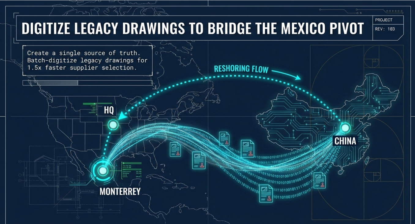 Why It Matters Now: 82% of manufacturers are actively reshoring or nearshoring, yet most struggle with the "Digital Divide". If technical data is trapped in unsearchable PDFs or paper files in the U.S., Mexican production teams lack a "single source of truth," leading to revision errors and launch delays.
