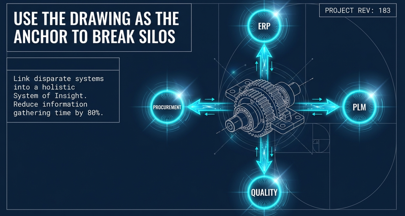 How CADDi Helps: CADDi Drawer functions as an AI-driven data lake, using the drawing as the central anchor to link ERP, PLM, and quality systems. This creates a single source of truth that provides the agility needed for rapid scenario modeling and reduces procurement information-gathering time by over 60-80%. For more, see: Manufacturing Systems of Insight: Transforming Data into Value.